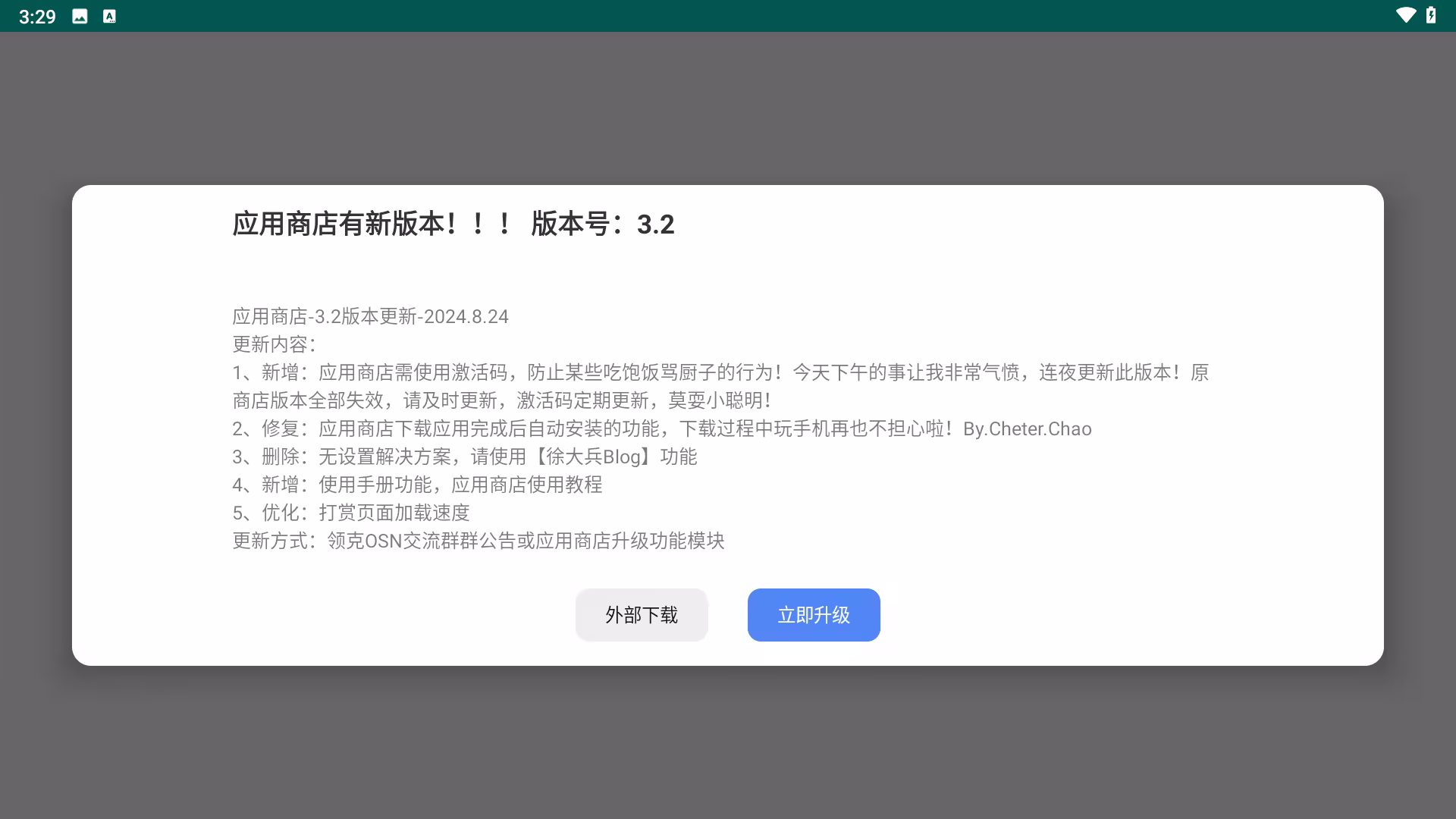 应用商店激活码: 为了防止未经授权的传播和不当使用,应用商店采用激活码机制。激活码将在【领克OSN交流群】中发放,并会不定期更换。请勿尝试绕过此机制,尊重开发者的劳动成果。